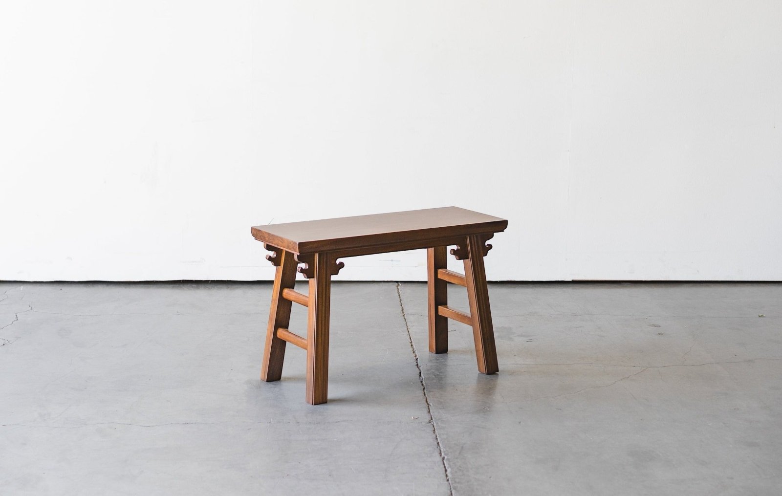 The Cloud Stand is a small Ming era bench featuring recessed legs and embellished apron head spandrels. Many related forms were made during the Ming and Qing eras, and they were typically used as stools.