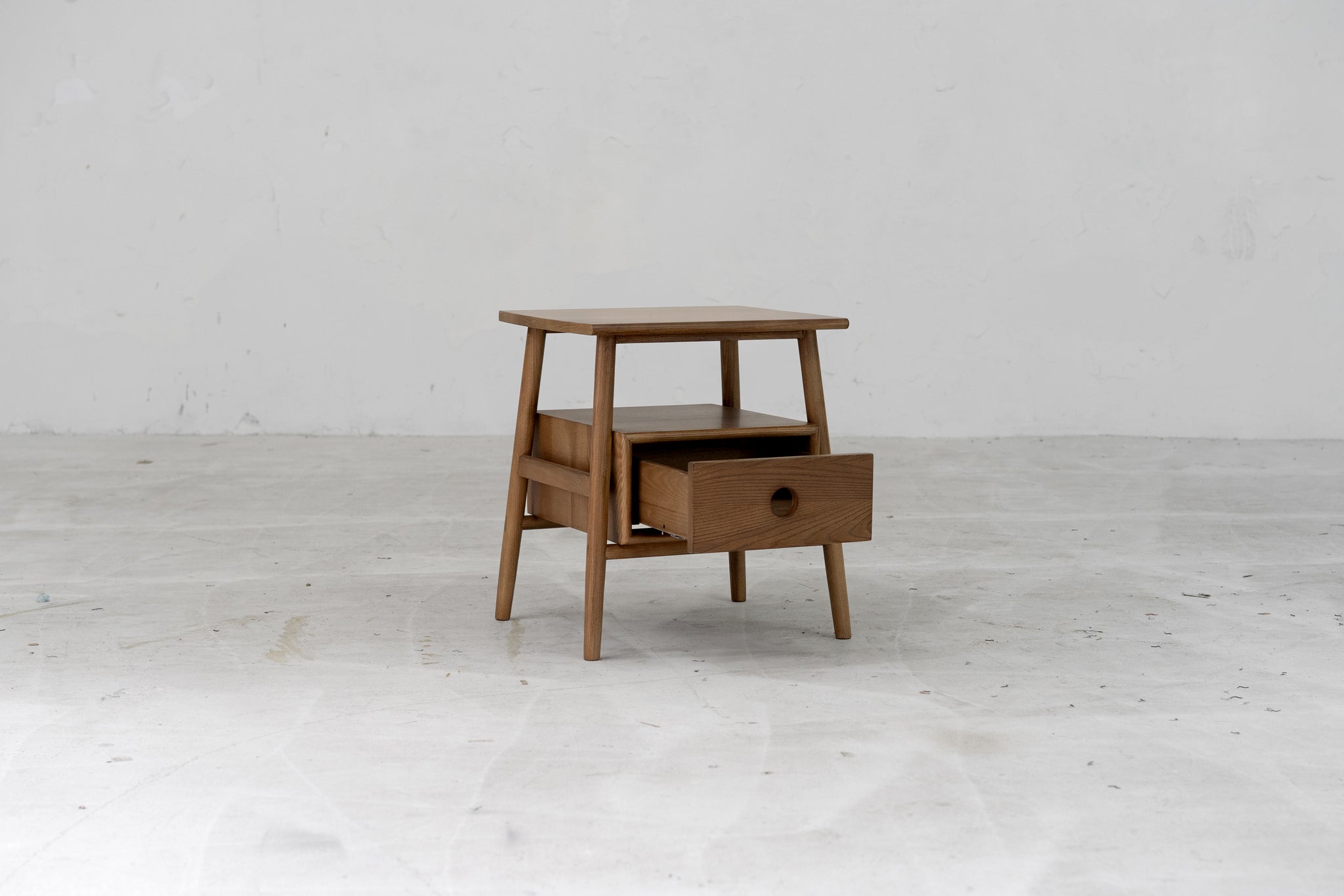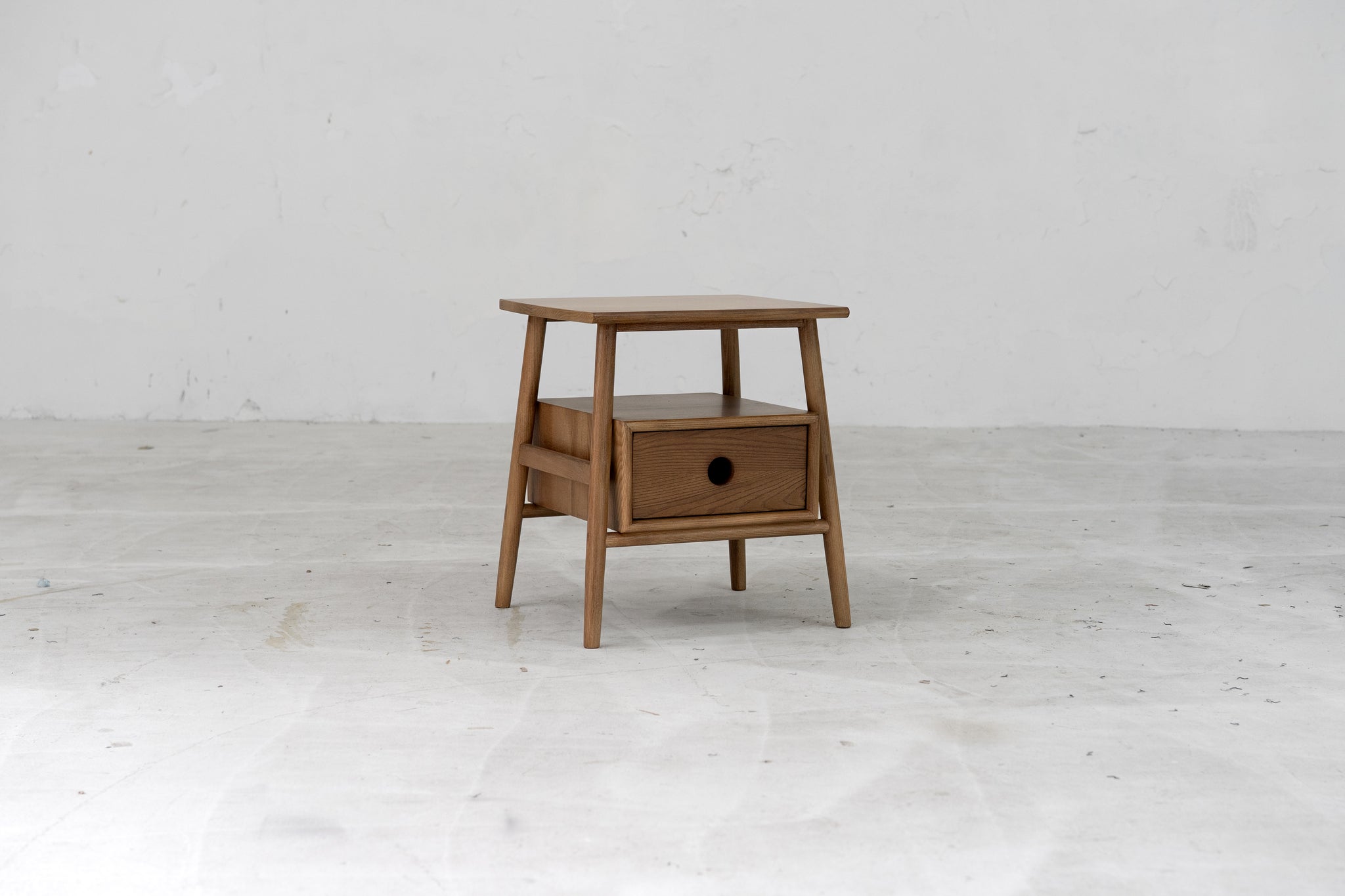 The Sitka Side Table is made with traditional joinery techniques and exposed tenons. Open shelving for display and a drawer to hide away the rest.
